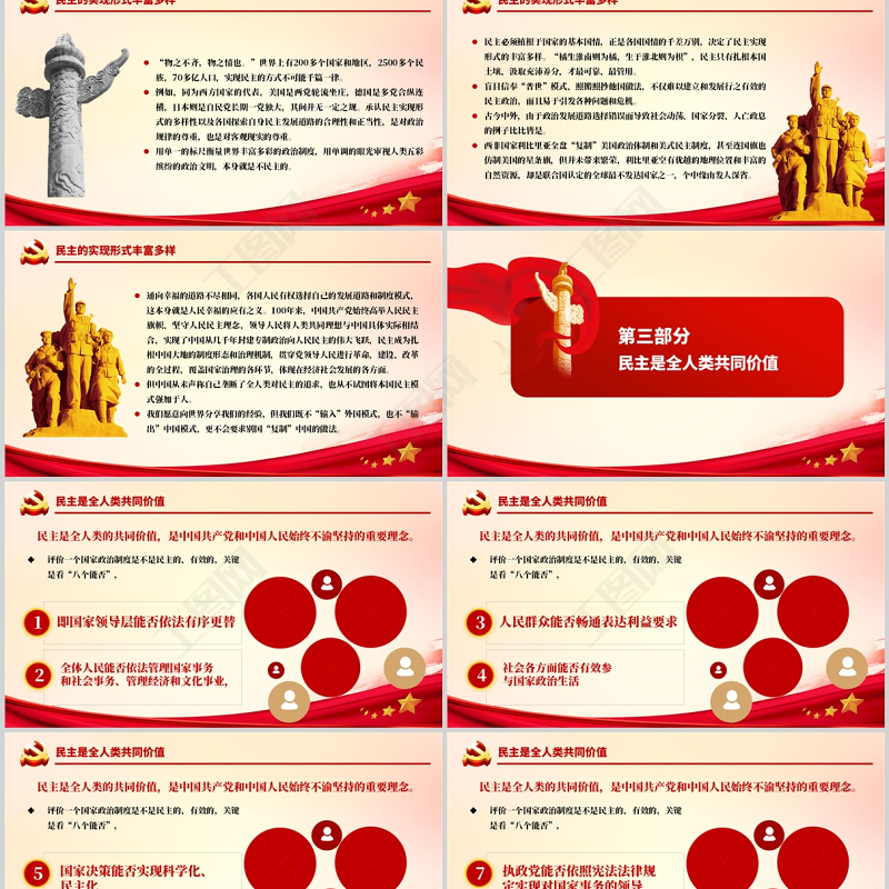 工圖網(wǎng)提供民主是中國(guó)共產(chǎn)黨矢志不渝的堅(jiān)定追求PPT紅色精品堅(jiān)持人民民主弘揚(yáng)共同價(jià)值專(zhuān)題黨課課件模板供會(huì)員免費(fèi)下載。更多精彩黨課PPT素材,盡在工圖網(wǎng)。