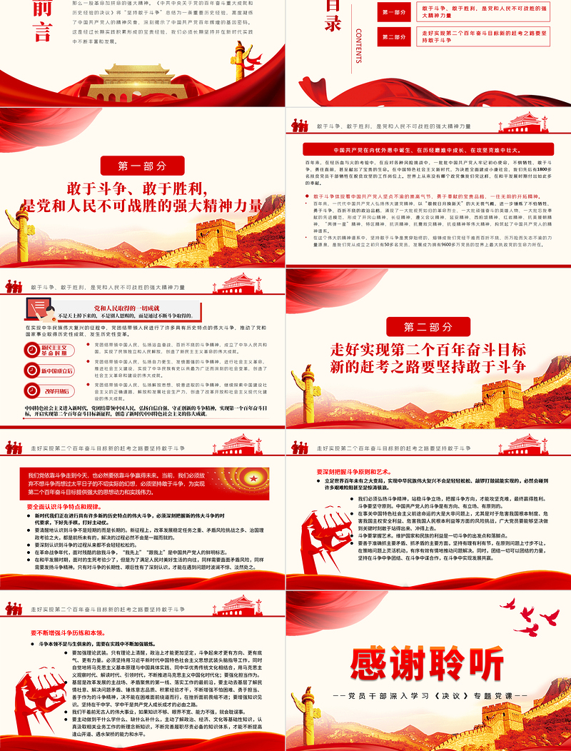 工圖網(wǎng)提供走好新的趕考之路要堅(jiān)持敢于斗爭PPT紅色簡約風(fēng)黨員干部深入學(xué)習(xí)《決議》專題黨課供會(huì)員免費(fèi)下載。更多精彩黨課PPT素材,盡在工圖網(wǎng)。