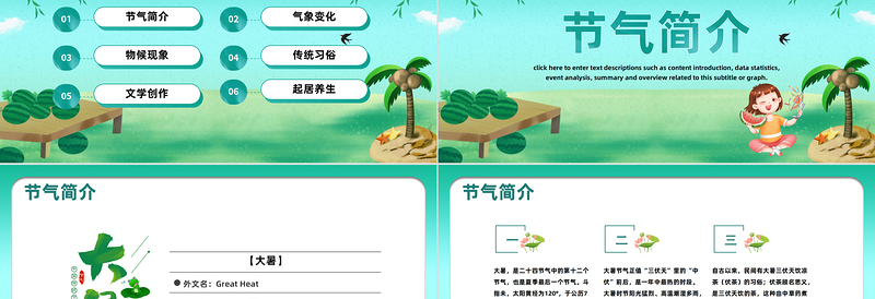 2023大暑時節(jié)PPT卡通風(fēng)二十四節(jié)氣之大暑知識宣講課件模板下載 Array